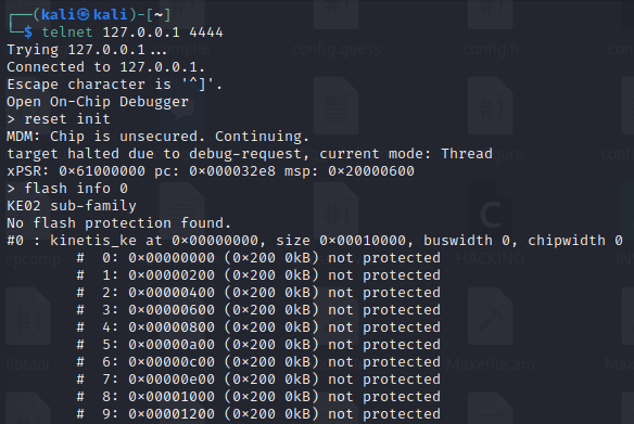 Now there’s a repeatable connection to the debug port we can have a look at the flash as check that’s accessible.